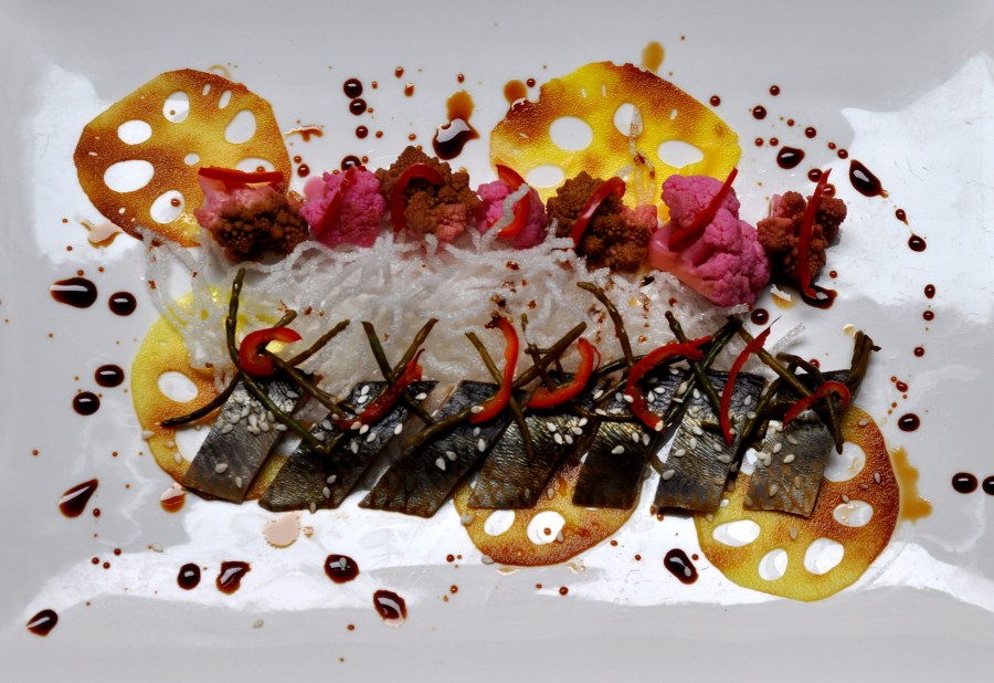 Marinated Herring with Pickled Vegetables is the second dish from Salted Sea Seafood & Raw Bar in Columbia City, for Alaska Herring Week 2017!