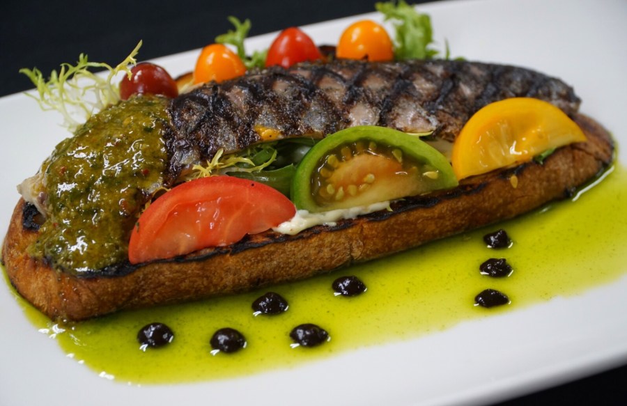 Grilled Alaska Herring Toast from Sky City At The Space Needle for Alaska Herring Week 2017! Photo courtesy SkyCity.